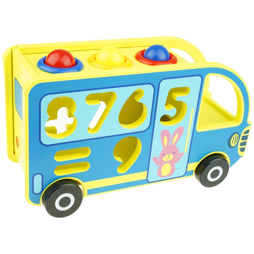 Avto sortirnikzdružuje zabavo z učenjem. Glavna naloga sorterja je, da številke poveže z ustreznimi luknjami. Zahvaljujoč pisanim blokom zagotavlja tudiodlična zabava. Vsi elementi soiz na dotik prijetnega lesa .