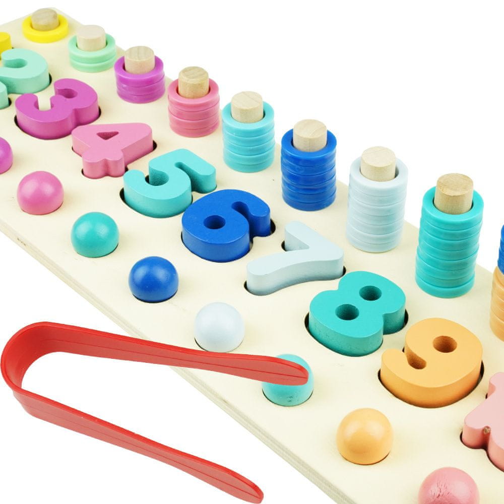Ta igra krepi fino motoriko, vizualno-prostorske spretnosti, uči štetja, seštevanja in iniciacijske spretnosti. Je uvod v osnovno matematiko in prepoznavanje barv.