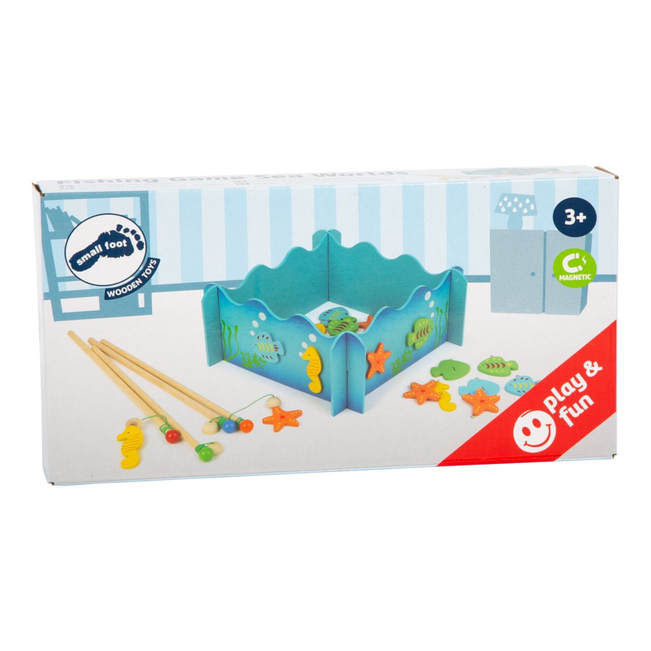 Kdo bo ujel več rib? V tej 3D leseni igri z leseno ribiško palico z magneti boste zlahka ujeli pisane ribe in morske konjičke.Glavneznačilnosti: vadi spretnost in razvija potrpežljivost4 ribiške palice