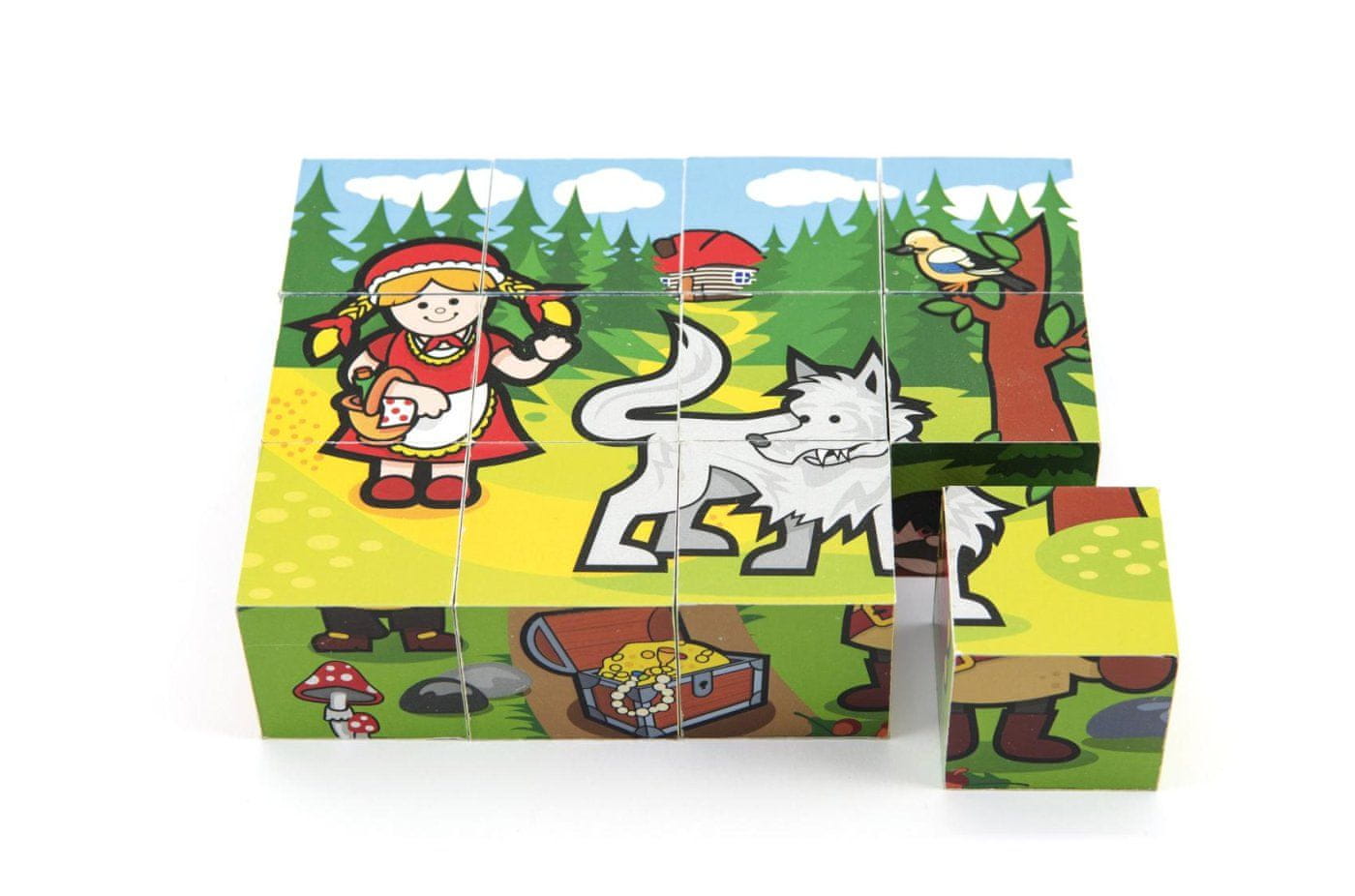 Leseni bloki s pisanimi slikami, ki temeljijo na klasičnih pravljicah, so odlična izbira za najmlajše. Celoten opis