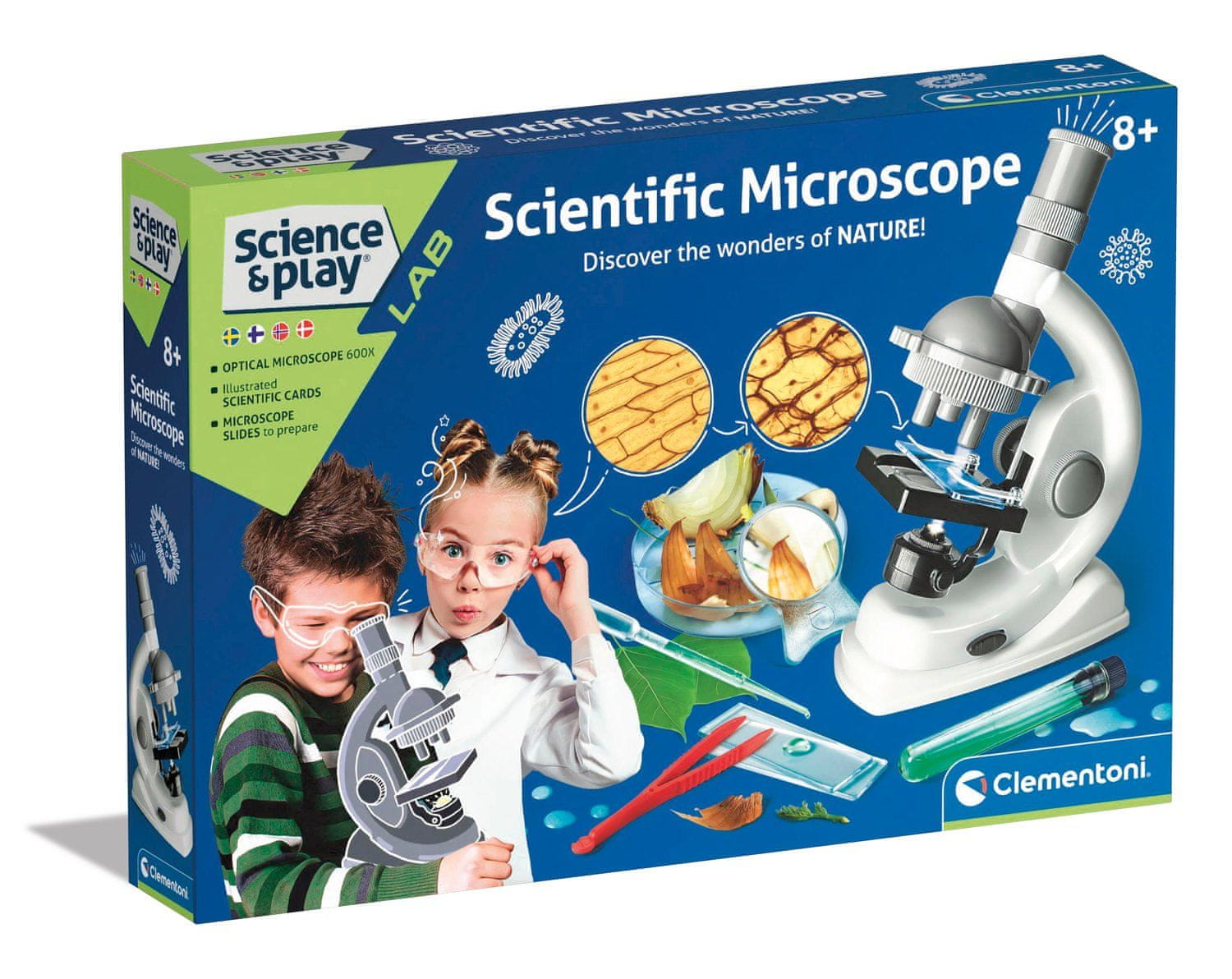 Poglejte svet okoli sebe od blizu! Kakovosten in za uporabo enostaven mikroskop poveča predmet do 600-krat. Vključuje mikroskop, pripomočke za preglede in navodila s 50+ poskusi, ki jih lahko izvajate doma! 8+