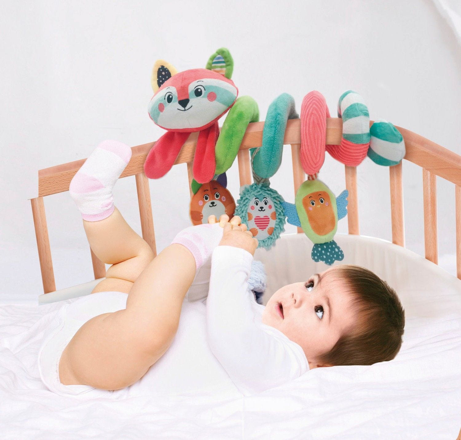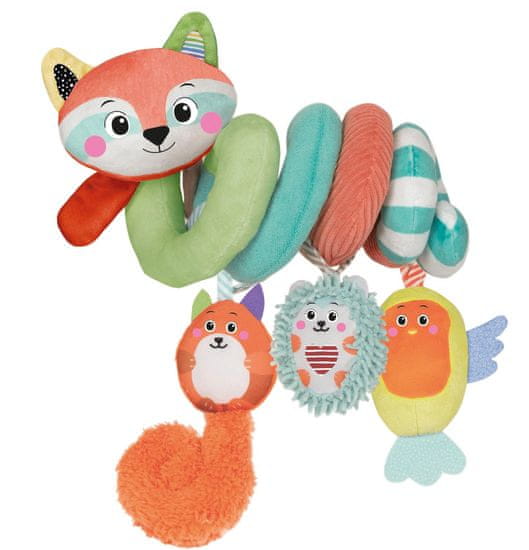 Ta srčkan rakun s svojimi prijatelji poskrbi za veselje vašega otroka! Igračo za aktivnost v obliki spirale lahko pritrdite na voziček ali posteljico. Mali prijatelji veverica, ježek in ptič imajo zanimive funkcije. 0 m+