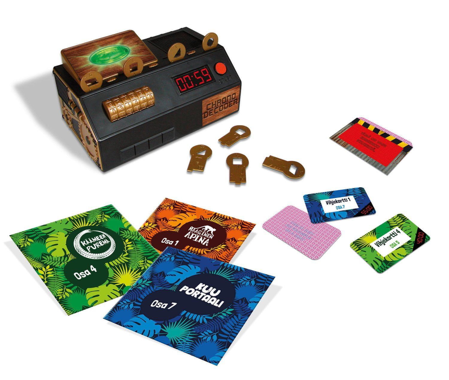 Ali lahko vi in vaši prijatelji rešite štirimestno kodo, preden poteče čas? vklj. naloge in namigi za tri izzive Escape Room, krono dekoder in pravila igre. 3–5 igralcev. 3 x AA baterije (niso priložene). Jezik: finščina. 10+