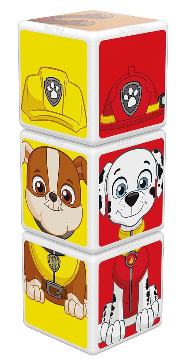 Magnetne kocke na temo Paw Patrol, iz katerih lahko sestavite šest različnih podob Rubblea, Zume in Marshalla ali ustvarite smešne nove mladiče. V paketu so tri magnetne kocke. Izdelano iz 100% Celoten opis