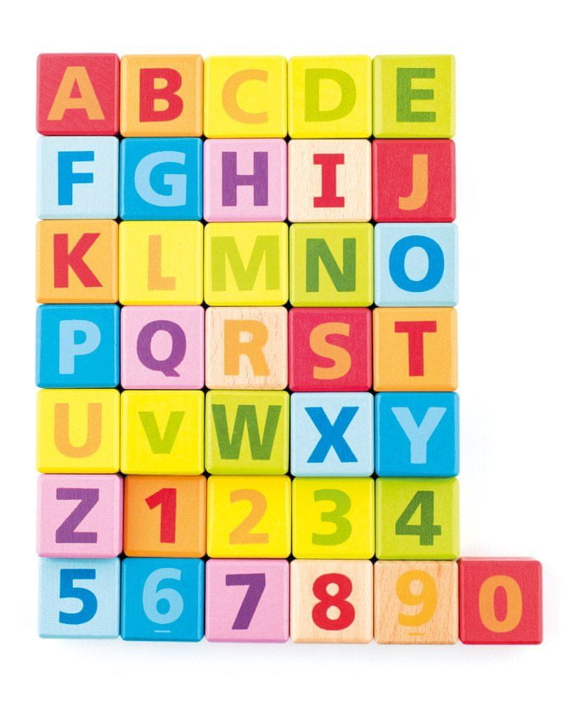 Woody Pastelne kocke s črkami in številkami, 60 kosov