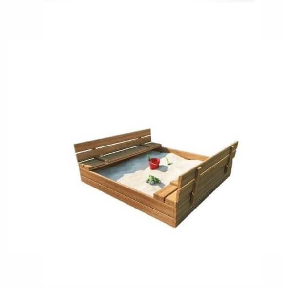 Drevené detské pieskovisko v rozmere 120×120 cm s hrúbkou 19 mm.