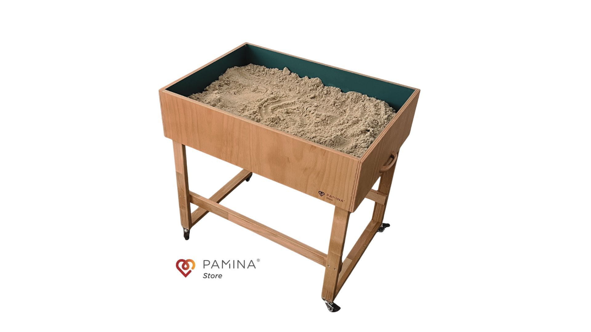 - Možnost nadgradnje: Peskovnik BASIC je možno nadgraditi z dodatnim manjšim peskovnikom “Pamina Sand Therapy Box PLUS”, ki lahko služi kot dodatni peskovnik za uporabo kinetičnega peska, je lažje prenosljiv in se ga prav tako lahko namesti v ogrodje osnovnega peskovnika.