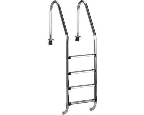 Standardna štiristopenjska lestev za bazen je namenjene vsem vrstam bazenov v tleh z globino najmanj 130 cm. Konstrukcija je iz nerjavečega jekla in ima trpežne plastične konce, ki ščitijo steno bazena pred morebitnimi poškodbami. Na izbiro imate več modelov, ki se razlikujejo po obliki in velikosti