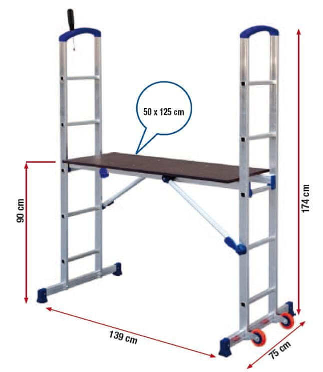 Facal Penny je majhen a kompakten gradbeni oder s funkcijo stopnic. Trdnost mu omogoča aluminijasto ogrodje, za lažje rokovanje pa skrbi opremljenost z dvema kolesoma.