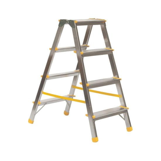 Dvostranski Al 4 (820 mm) 1924 EUROSTYL Reverzibilne zložljive stopnice tipa EUROSTYL iz aluminija.Ko so zložene, so visoke 82 cm. Primeren je za delo na vrtu, okoli družinske hiše, v hiši ali za vsakodnevno uporabo v podjetjih.Za zunanjo in notranjo uporabo. Plastični deli, tj. noge in nosilci z Celoten opis