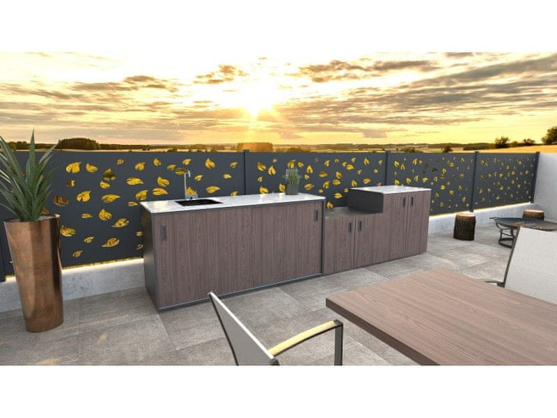 Vsi elementi letne kuhinje so med seboj popolnoma kompatibilni in se lahko med seboj poljubno spajajo;