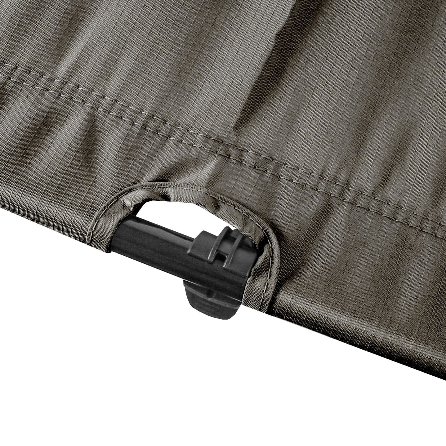 Prevleka za ležalnik je izdelana iz kakovostnega poliestra in oxforda, kar zagotavlja udobje in odpornost proti obrabi. Ta material je enostaven za vzdrževanje in odporen proti vlagi, kar je idealno za uporabo v naravi.