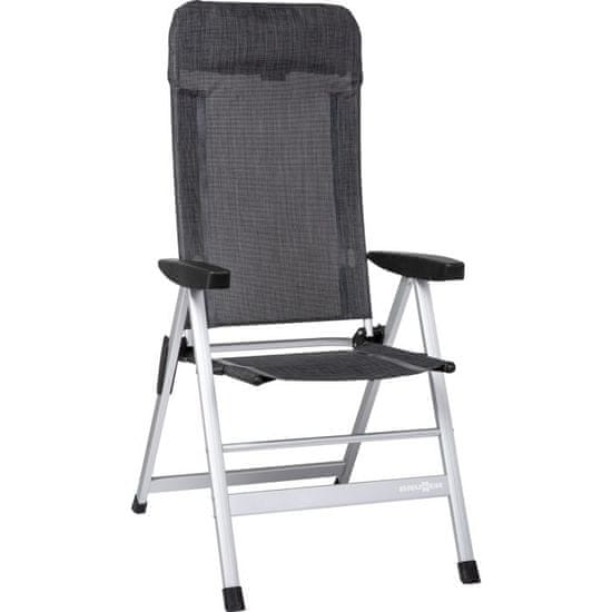 Zložljiv 4-nožni zunanji stol s 6-stopenjskim naslonom. Aluminijast okvir, Syntex Plus prevleka, trpežni nasloni za roke. Možnost priključitve naslona za noge. Kompaktna velikost za enostaven transport. Celoten opis
