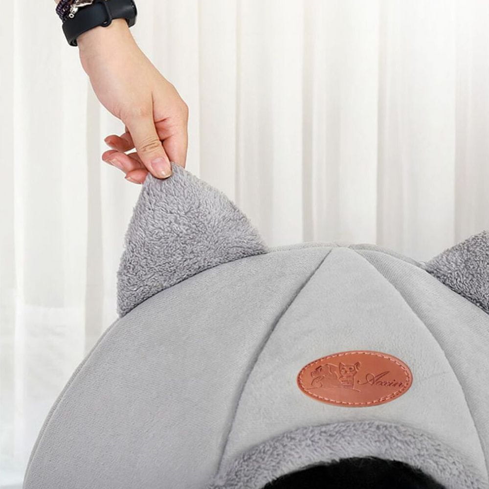 Ležišče za mačke iz mehkega in udobnega materiala, ki spominja na majhno in udobno hiško. To je idealen kraj za mačko, ki ima rada lastno zaprto zavetje. Material postelje ni samo mehak in udoben, ampak tudi odporen na praske in trganje. Kratek pliš, iz katerega je izdelana hišica, vaši mački ne zagotavlja le topline, ampak tudi prijetno mehkobo, zaradi česar je idealen prostor za sprostitev in počitek.