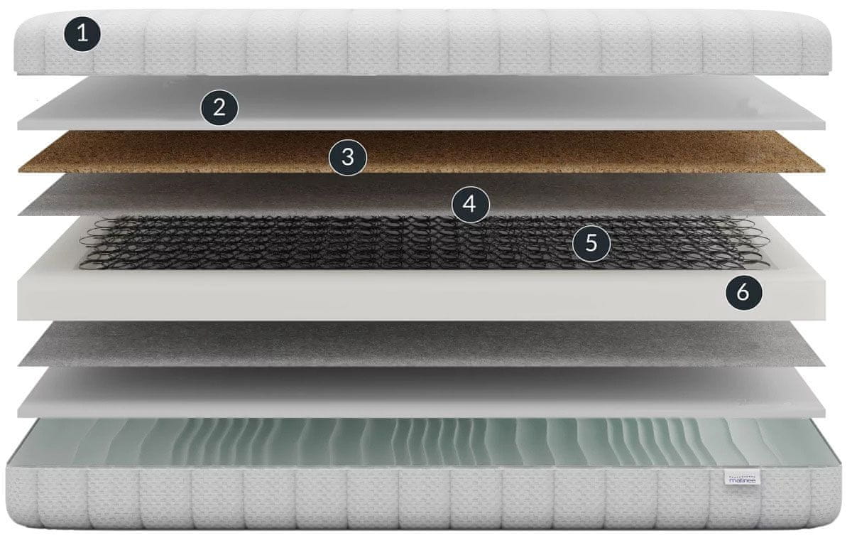 - trda kokosova podloga – 1 cm poldoge poveča trdoto ležišča in razprši težo na vse vzmeti
