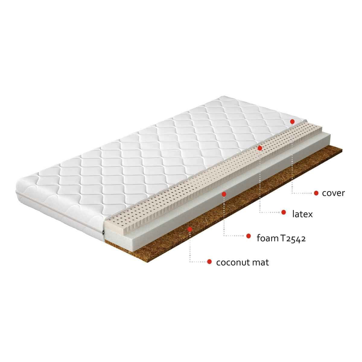Nič ni lepšega kot zjutraj vstati iz postelje polni energije in svežine. Izbira prave vzmetnice, ki izpolnjuje vse vaše zahteve, je lahko težavna. Kljub temu je vzmetnica iz pene MONI 80 lahko idealna izbira za vaše telo. Materiali, uporabljeni za izdelavo, so antialergijski, zračni in odporni na prah, pršice in nastanek plesni. Vzmetnica je izdelana iz visokokakovostne, elastične pene T2542, ki se prilagaja obliki vašega telesa. Na eni strani je dodana kokosova plošča, ki je antialergijska in antibakterijska in bo zagotovila trdnost vzmetnice ter zagotovila njeno odpornost na deformacije. Na drugi strani pene je nameščen sloj lateksa, ki ga odlikuje odlična elastičnost in prilagodljivost človeškemu telesu ter zagotavlja dolgotrajno obstojnost. Snežno bela prevleka za vzmetnico ima zadrgo, zahvaljujoč kateri je snemljiva in jo lahko enostavno operete v pralnem stroju pri temperaturi 40 °C. Vzmetnica je dolga 200 cm in široka 80 cm ter je srednje trdote H3.