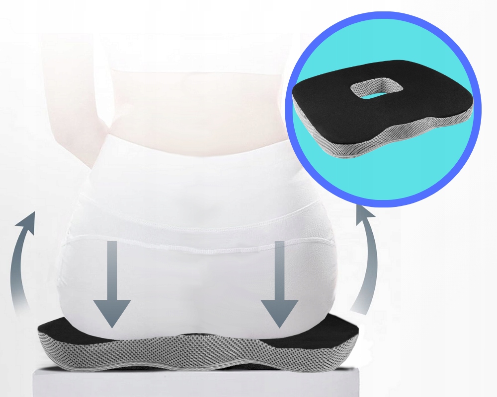 ostane na mestu tudi med dolgotrajno uporabo, kar vam omogoča, da se osredotočite na delo ali sprostitev, ne da bi ga morali ponovno nastavljati. Popolnoma zasnovana Udobna opora na katerem koli sedežu Blazina se popolnoma prilagodi stolu, naslanjaču ali avtomobilskemu sedežu in zagotavlja maksimalno udobje v vsaki situaciji. Posebej zasnovana luknja na sredini Luknja na sredini blazine zagotavlja odlično prezračevanje in preprečuje potenje med dolgotrajnim sedenjem. Prav tako lajša pritisk na občutljivih predelih, zaradi česar je idealna za ljudi s hemoroidi.