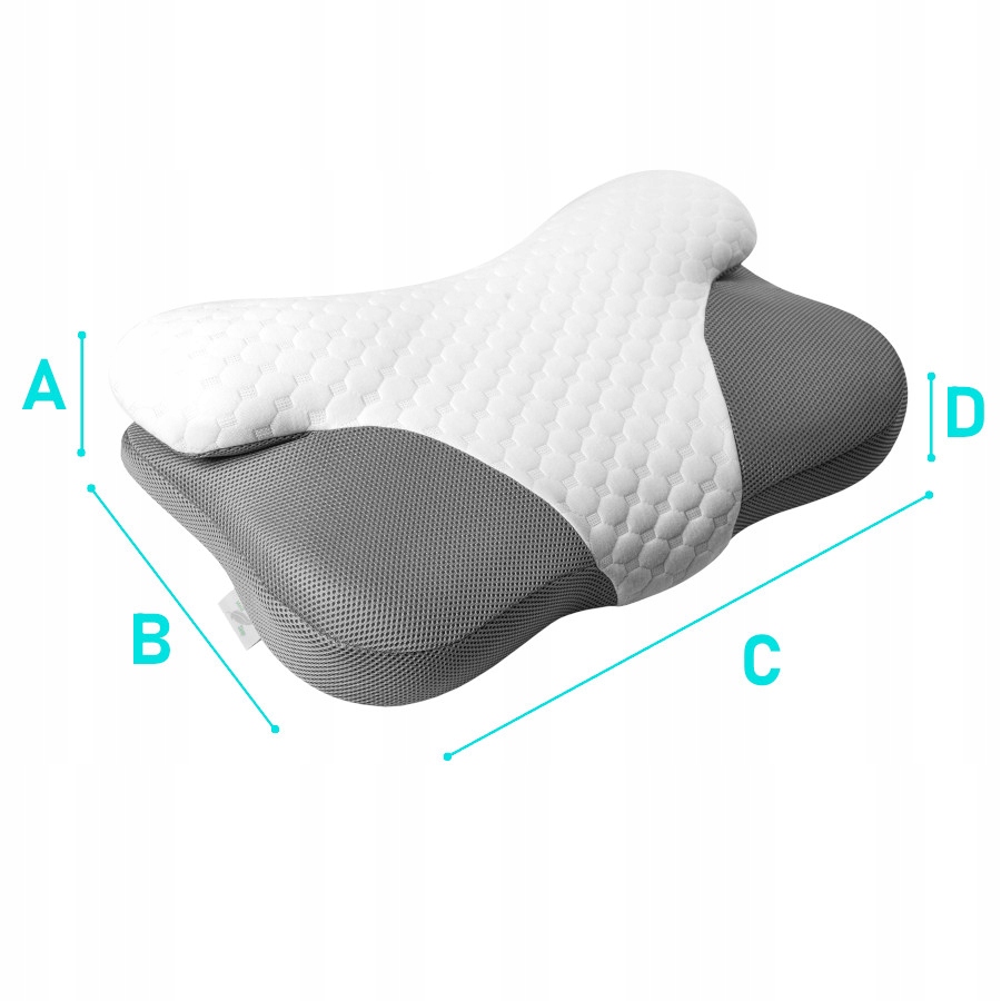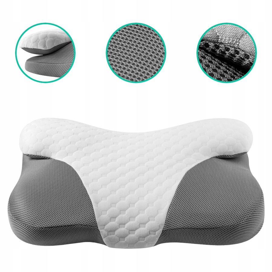 Ta vzglavnik je bil zasnovan z mislijo na tiste, ki spijo na boku – njegova oblika zmanjšuje pritisk na ramena in zagotavlja naravno oporo vratu.