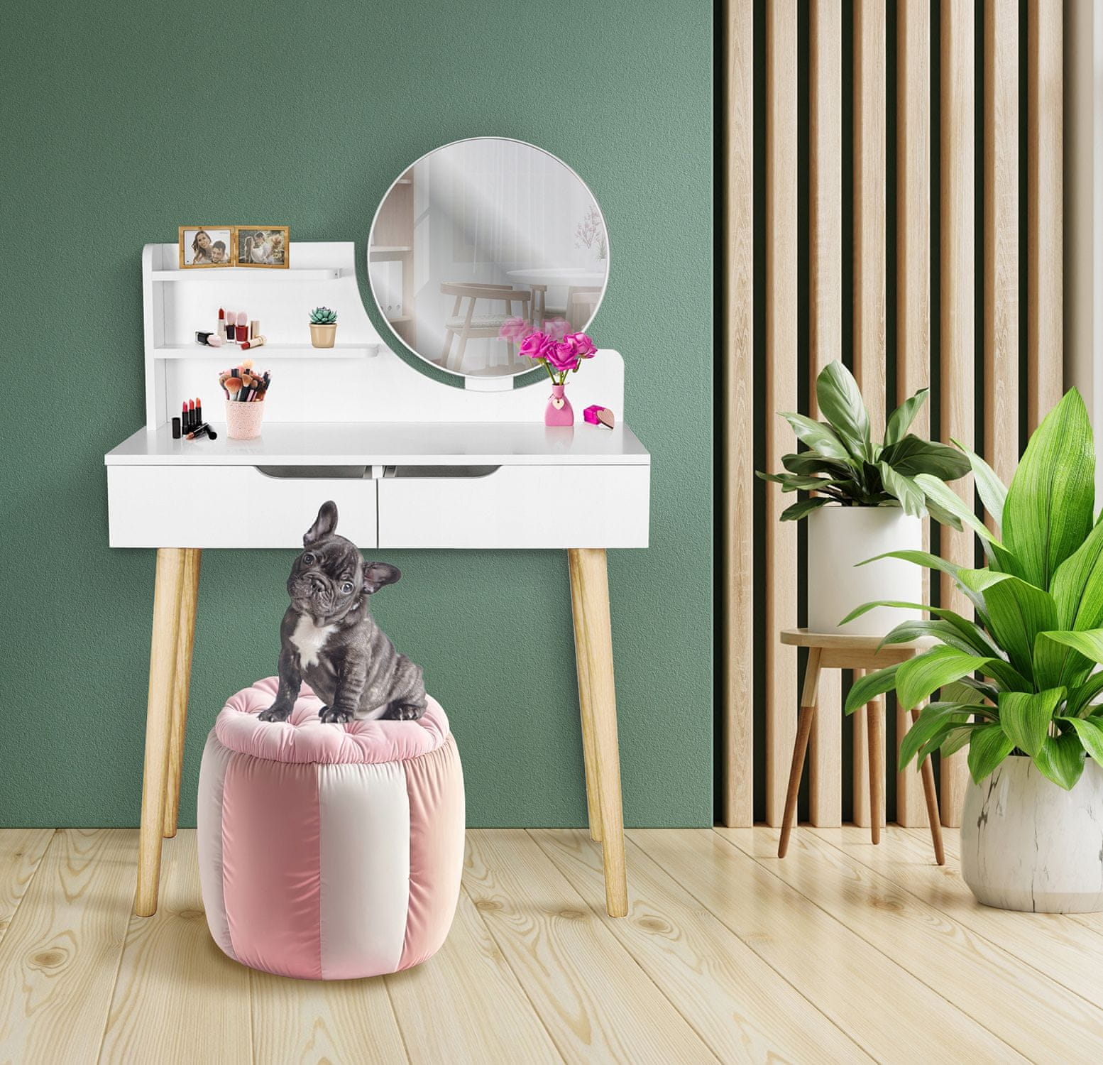 Toaletna mizica SCANDI z ogledalom, skandinavska kozmetika Celoten opis