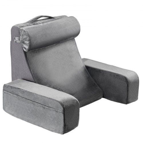 VEVOR Velik bralni vzglavnik opora za hrbet z naslonjali za roke in 3 žepi 70x63x48 cm siva