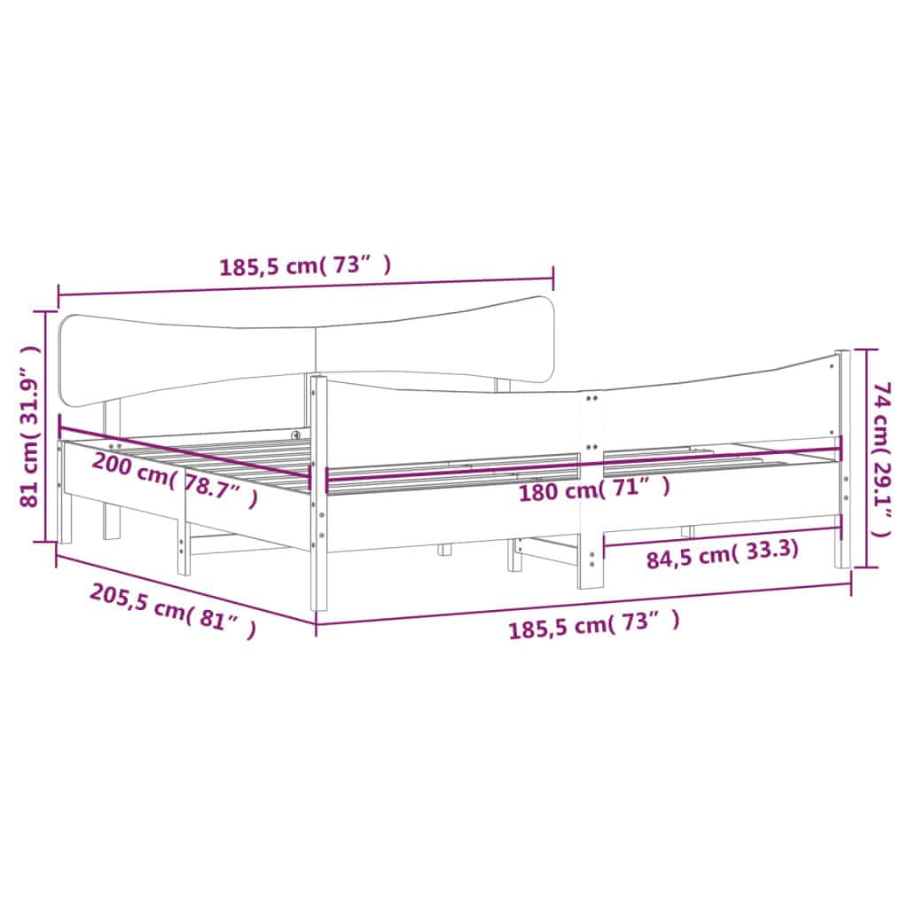 Vidaxl Posteljni okvir brez vzmetnice 180x200 cm trdna borovina