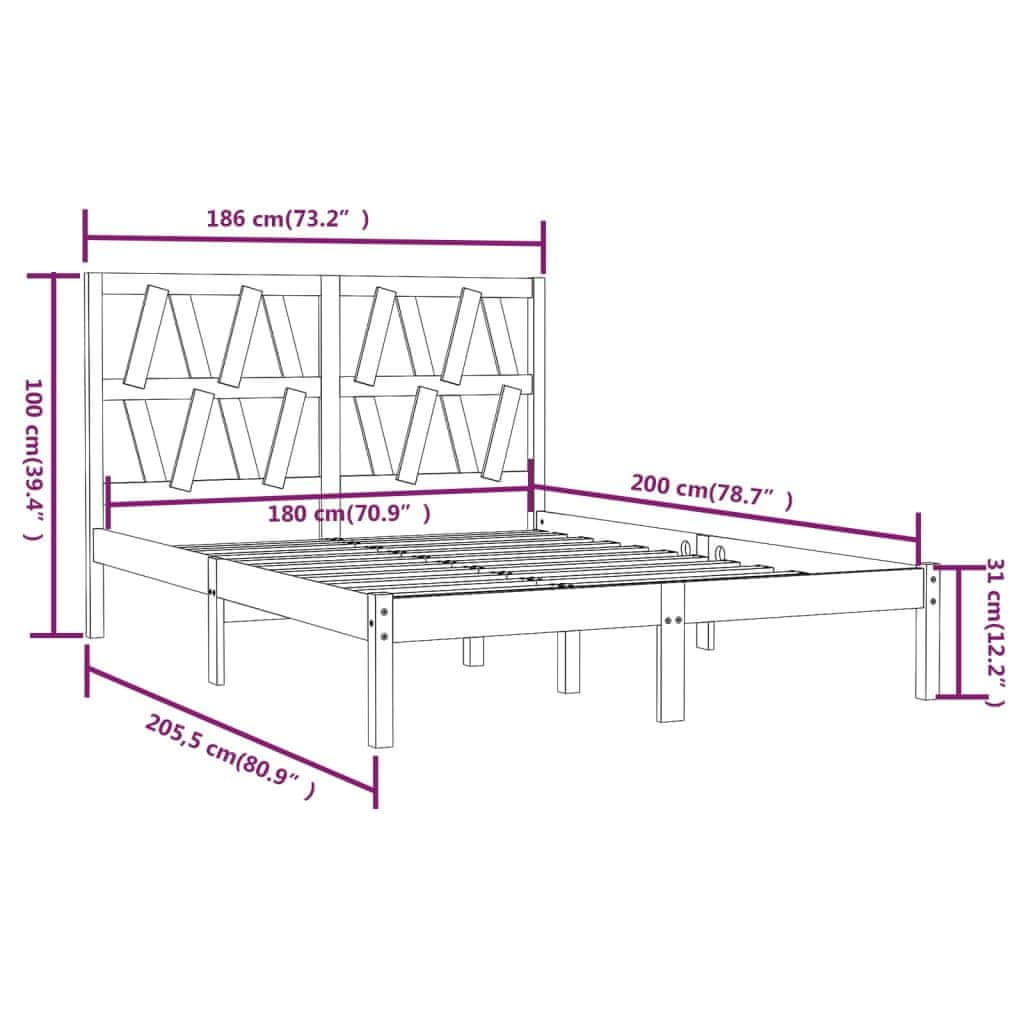 Vidaxl Posteljni okvir siv iz trdne borovine 180x200 cm