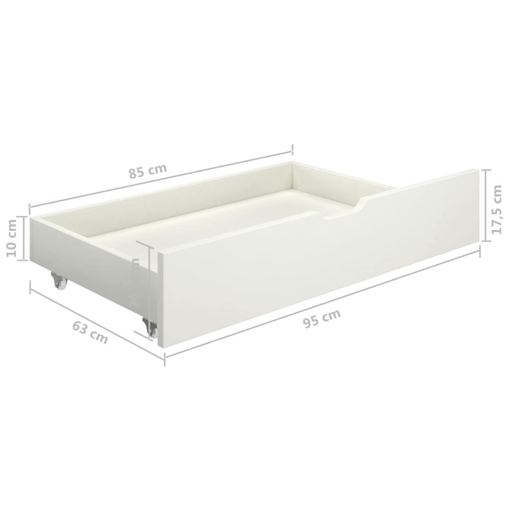 Vidaxl Posteljni okvir z 2 predaloma bela trdna borovina 140x200 cm