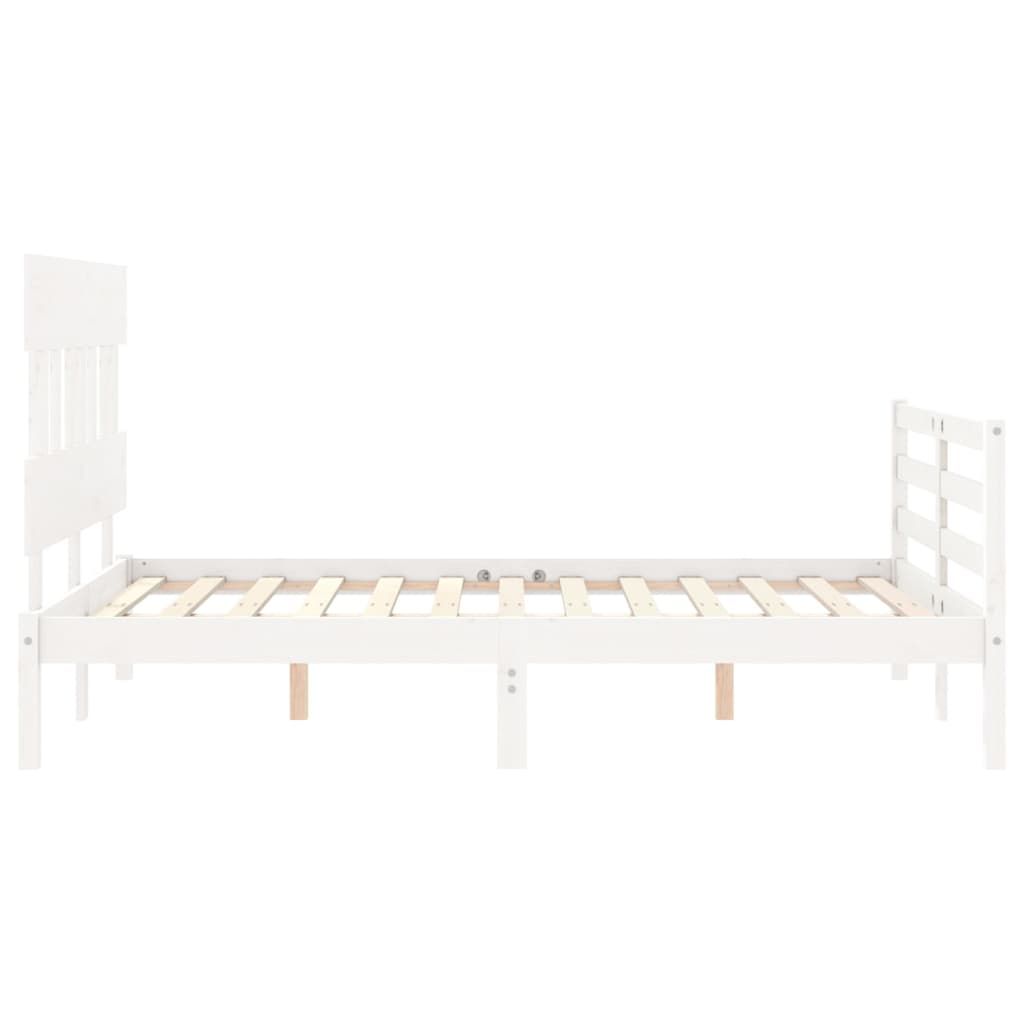 Vidaxl Posteljni okvir z vzglavjem bel 140x190 cm trden les
