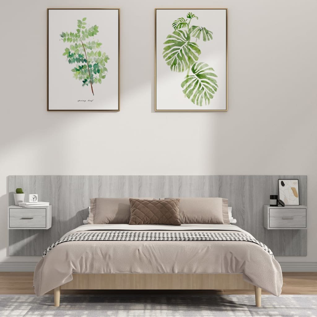 Vidaxl Posteljno vzglavje z omaricami siva sonoma konstruiran les