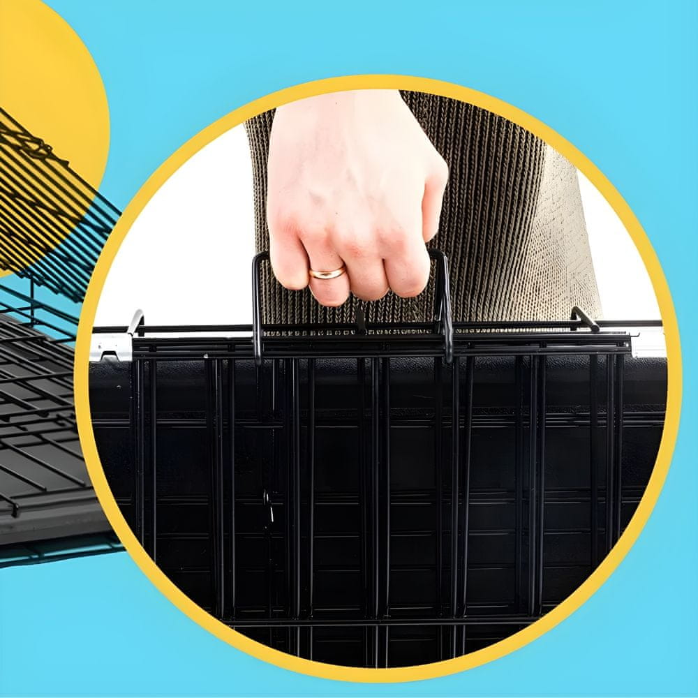 Velika kovinska kletka XL za pse ali mačke – robustna transportna kletka in ograda za igro v enem. Izdelana iz debelih, proti koroziji odpornih palic, z zaobljenimi robovi za popolno varnost hišnih ljubljenčkov. Dvoje vrat omogoča enostaven dostop z vseh strani, izvlečni pladenj pa omogoča hitro čiščenje. Kletka se zloži v nekaj sekundah za enostavno shranjevanje in prevoz. Popolna za notranjo in zunanjo uporabo.