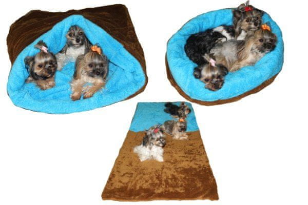 Postelja 3 v 1 je namenjena večjim psom (npr. basetom itd.) ali pasji družini. Primeren je za počitek in prijetno poležavanje hišnih ljubljenčkov, ki bodo cenili njegovo zasebnost. Postelja se odlično uporablja doma, pa tudi na poti. Uporablja se lahko v vseh letnih časih (zmotno je prepričanje, da se postelje 3v1 uporabljajo le v hladnem obdobju), saj se žival kadar koli želi stisniti k sebi in imeti svojo posteljo.