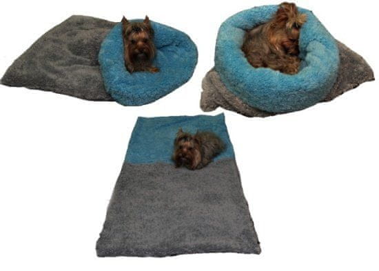 Pasja postelja Marysa 3v1, DE LUXE, siva/svetlo modra, velikost XL