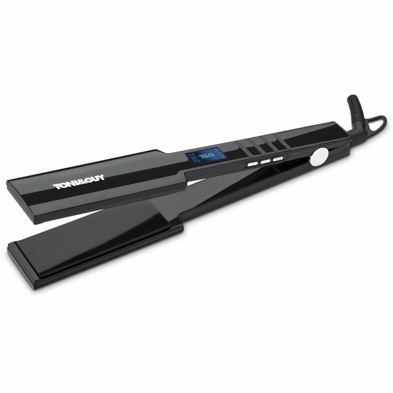 TONI & GUY TGST2998E, ravnalo za lase Ta raven likalnik je idealen za oblikovanje dolgih in debelih las. Keramična turmalinska grelna površina zagotavlja zaščito las. Celoten opis
