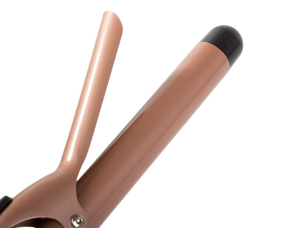 Sistem sponk za lase in izolacijska konica zagotavljata enostavno uporabo. Ta keramični kodralnik ima ionske lastnosti za enakomerno segrevanje las od znotraj, kar zadržuje vlago in zmanjša statično elektriko za bolj zdrave lase.
