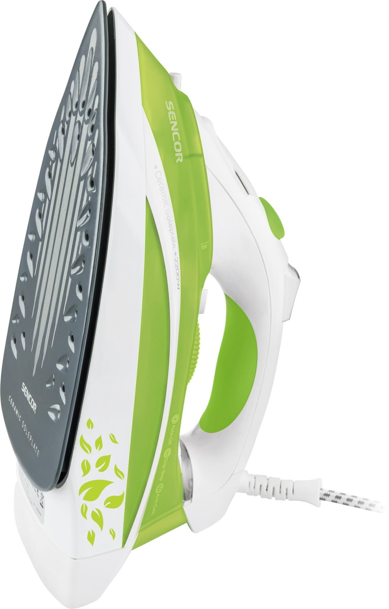 Sencor SSI 8440GR likalnik na paro s priključno močjo 2200 W se ponaša s keramično likalno površino. Odlikujejo ga sistem samodejnega čiščenja za odstranjevanje vodnega kamna, sistem proti kapljanju za preprečevanje nastanka madežev na tkaninah, stalen nadzor temperature in izhajanja pare, tipka za pršenje, termostat ter funkcija navpičnega izhajanja pare.