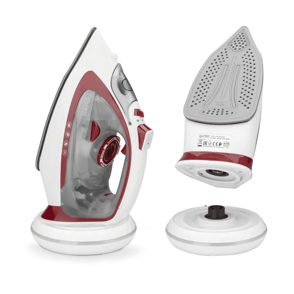 First Austria Likalnik brezžični parni s keramično ploščo FIRST, belo-rdeč, 20g/min., 2400W
