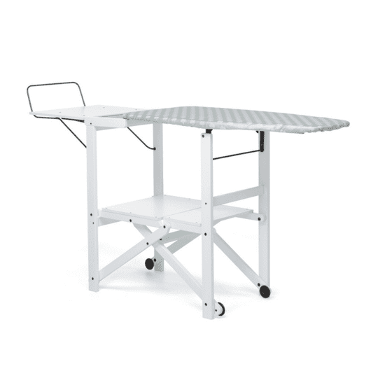 Zasnovana za zagotavljanje največjega udobja, je Asso odlična zaveznica za vzdrževanje reda v hiši. Ko ni v uporabi se popolnoma zapre, zavzame minimalno prostora, likalnik pa ostane na svojem mestu. Dve gumijasti kolesi vam omogočata, da jo premikate z lahkoto.