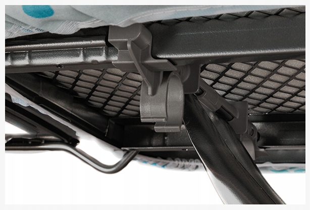 Stojalo za likalnik vam omogoča, da likalnik med likanjem enostavno postavite na hrbet, ne da bi pri tem poškodovali prevleko. Podstavek likalne deske Star Plus ima tudi kavlje za obešanje zlikanih srajc ali bluz.
