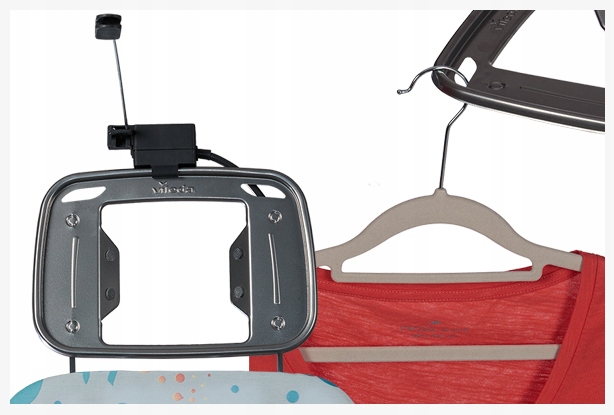 - Stojalo za likalnik s silikonskimi izboklinami in režami za obešalnike