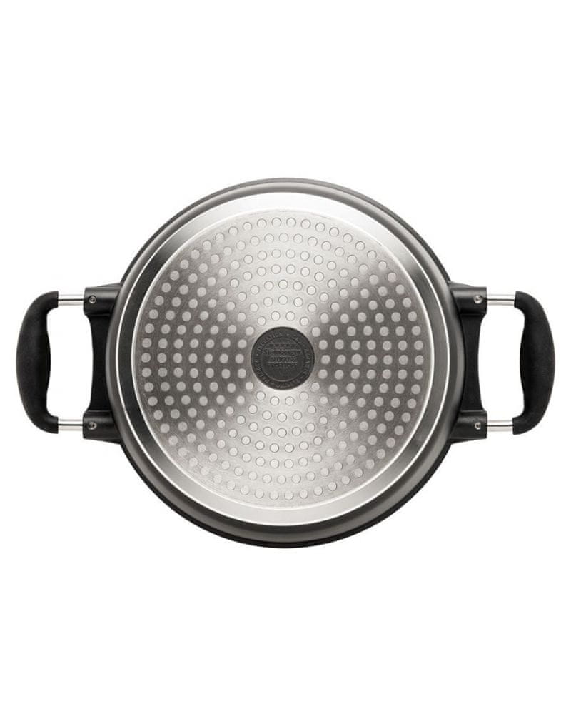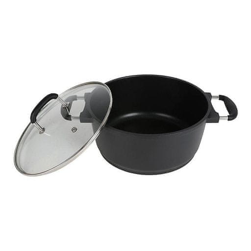 Masivna zlitina omogoča hitro segrevanje in enakomerno porazdelitev toplote za optimalen rezultat pečenja, praženja in kuhanja. Steklen pokrov omogoča, da lahko opazujemo potek kuhanja, brez da bi zaradi dvigovanja pokrova uhajala toplota. Celoten opis