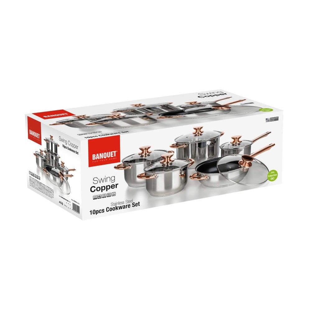 Banquet Komplet posod 10 kosov. Nerjaveče jeklo/meden SWING Copper