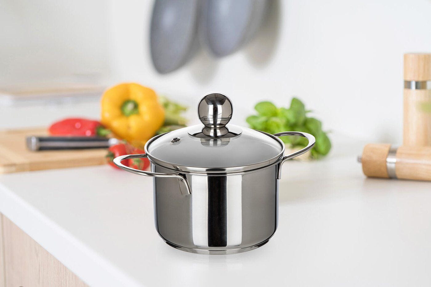 Kotliček 12 cm, s steklenim pokrovom, 0,85 l, iz nerjavečega jekla, PICCOLO.