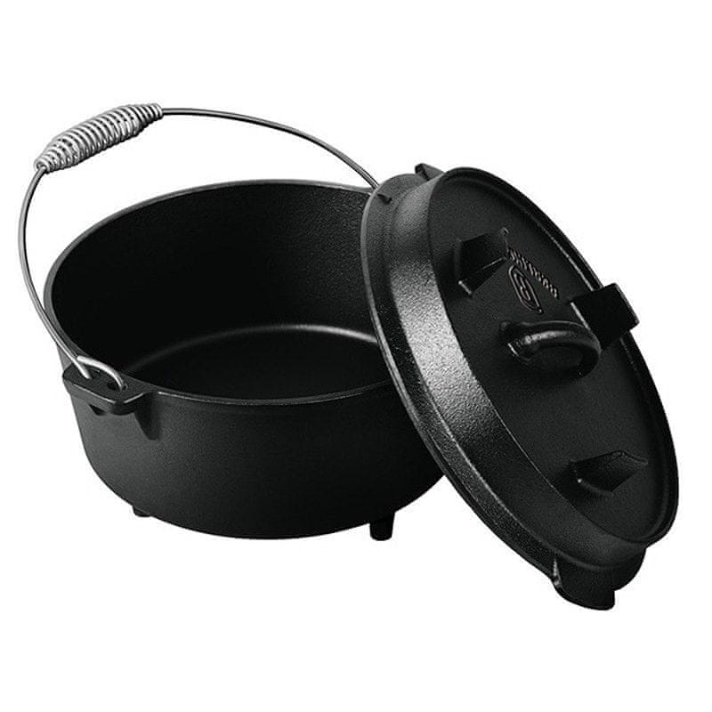 Ta litoželezni lonec je kot nalašč za uporabo v pečici in na vrtni zabavi na ognju ali žaru. Narejen je iz težkega litega železa, ki enakomerno prenaša in ohranja toploto. Vsebnost lonca je 4 litri, njegove mere pa so 25×14,5 cm. Opremljen je s pokrovom z ročajem iz nerjavečega jekla. Črna barva daje loncu eleganten videz.