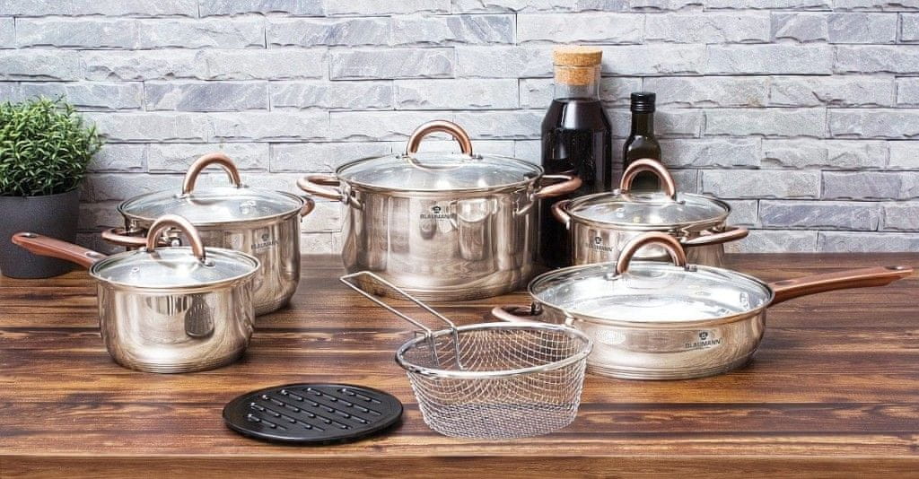 Blaumann Komplet posode iz nerjavečega jekla 13 kosov Gourmet Line z bakrenimi ročaji BL-3244