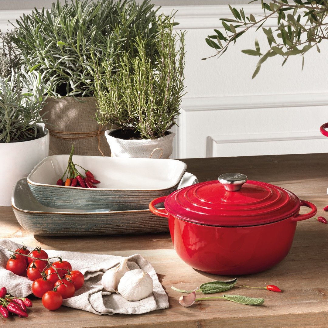 Emajlirana rdeča kozica BRANDANI »COCOTTE« iz litega železa (ghize) je trpežen in vsestranski kos posode, ki ne sme manjkati v nobeni kuhinji. Gre za »Dutch oven« tip posode – litoželezna kozica je namreč prevlečena z dolgoobstojnim porcelanastim (emajl) premazom s pripadajočim pokrovom. Emajlirano lito železo je izredno cenjen in robusten material, ki se odlično prilagaja različnim načinom priprave in kuhanja jedi. Še posebej je priporočljiv za dolgo in počasno kuhanje na šibkem ognju in za cvrenje, saj je ena od glavnih značilnosti litoželeznih posod ravno izjemna spodobnost vzdrževanja in ohranjanja toplote ter posledično enakomerno kuhanje in praženje hrane. Posoda je primerna tudi za serviranje neposredno na mizi, saj v takšni posodi ostanejo jedi dlje časa tople. Pokrov posode zadržuje paro, ki se ustvarja med kuhanjem hrane, kar samo še dodatno izboljšuje okuse in privede do izjemnih rezultatov. Litoželezno posodo lahko uporabljate na vseh kuhalnih površinah, vključno s plinskimi štedilniki, električnimi ploščami ter steklokeramično in indukcijsko ploščo. Posodo lahko uporabljate tudi v tradicionalni pečici do temperature 250°C. Litoželezna posoda ni primerna za uporabo v mikrovalovni pečici. Pri prenašanju posode vedno uporabite debelo kuhinjsko krpo ali kuhinjske rokavice. Kozica ni primerna za pomivanje v pomivalnem stroju.