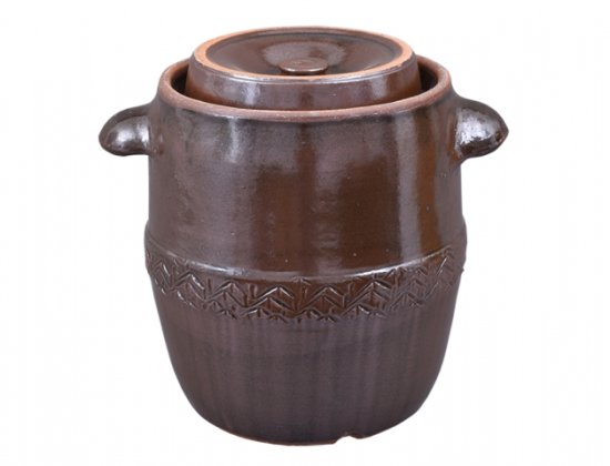 Keramični rjavi sijajni tako imenovani „zelák“ s pokrovom in ušesi. Zelje je kislo in se pusti fermentirati. Njegove mere so: d.32 x v.49 cm, prostornina 27 l.
