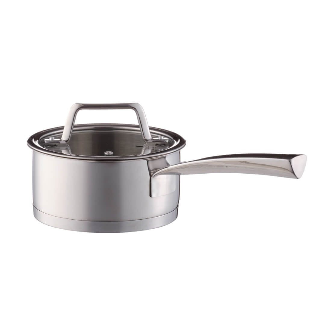 Set posod Free, blagovne znamke Brandani, je izdelan iz poliranega nerjavečega jekla 18/10, ki je zelo odporno proti rji in koroziji. Set navdušuje z oglato oblikovanimi ročaji in pokrovom iz kaljenega stekla z odvodom pare. 3-slojno dno (aluminij-jeklo-aluminij) poskrbi za popolno toplotno razpršitev in omogoča optimalno prevajanje toplote. Posoda se lahko uporablja za plinsko, električno, steklokeramično, halogensko in indukcijsko kuhanje. Primerna je za pomivanje v pomivalnem stroju. Set sestavlja: Kozica z 1 ročajem / premer 16 cm / višina 8 cm / 1 L Nizka kozica z dvema ročajema / premer 24 cm / višina 8 cm / 2 L Lonec / premer 18 cm / višina 11 cm / 2 L Lonec / premer 22 cm / višina 16 cm / 5 L 3 x Pokrov / premer 16, 18, 22 in 24 cm