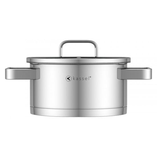 Jekleni lonec LUCIA s pokrovom znamke Kassel. Blagovna znamka, namenjena zahtevnejšim kupcem, ki ne iščejo le funkcionalne in estetske kuhinjske posode, temveč predvsem visokokakovostno izdelavo in vzdržljivost. Nenavaden primer kuhinjske posode, ki očara s svojo preprostostjo. Zaradi ravnih funkcionalnih ročajev, steklenih pokrovov in nezamenljive oblike so fantastičen dodatek za vsako kuhinjo. Lonec LUCIA blagovne znamke Kassel je izdelan iz vrhunskega nerjavečega jekla Cr-Ni 18/10, poliranega do visokega sijaja. Lonec ima priročen in praktičen pokrov iz kaljenega stekla z odprtino za izpust pare. Eleganten ročaj tako lonca kot pokrova je izdelan iz istega nerjavečega jekla.