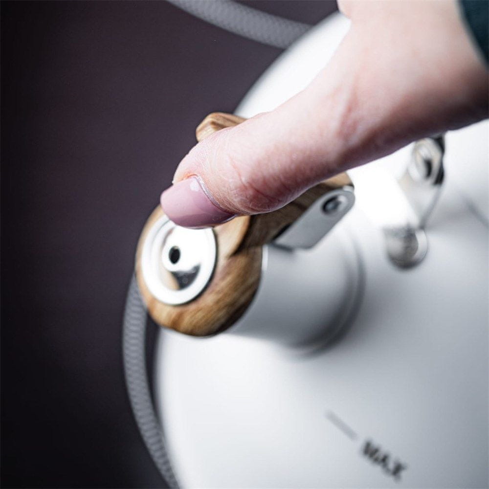 • Opremljeno s piščalko – z zvokom signalizira vrelo vodo, kar zagotavlja udobje in varnost.