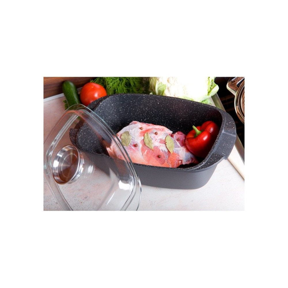 Marmorni premaz nove generacije je izbira za vse, ki želijo enostavno pripraviti zdrave in okusne obroke, pozabiti na hrano, ki se prijema dna lonca ali pekača, in postreči jedi z naravnim okusom in polne sočne arome. Uporablja se lahko tako za kuhanje na štedilniku kot v pečici (kovinski ročaji, brez plastičnih elementov).